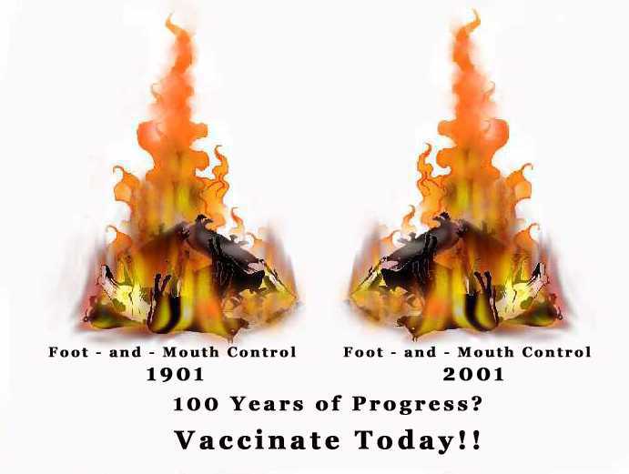Some Observations It is quite frightening to have seen how easily the news has been manipulated during the whole of the Foot - and - Mouth crisis. I am not simply referring to suppression of information or the dissemination of innuendo and smear to deflect criticism and blame. Many journalists have allowed the whole subject of debate to be decided for them so that real questions of importance or embarrassment to officials are not even on the agenda. Hence, contrary to the truth, it is widely accepted that the scale of the disaster was unavoidable, there was no choice but to slaughter infected and contiguous beasts, that vaccination would not work, that even vaccinated animals have to be slaughtered, that it is not possible to distinguish between a vaccinated and an infected animal, that Chinese restaurants are to blame, no the farmers are to blame, etc, etc. There was a very deliberate trend towards blaming farmers who were being told to maintain their bio security while at the same time, the countryside was opened up to the public. What on earth was the sense in telling farmers not to visit other farms as they were told on the DEFRA web site, while at the same time encouraging members of the public to do just that!! Oh yes, and we also had NFU chairman Eric Gill suggesting that the BBC is helping to spread the disease with helicopters. Pleeeeeeease!! If we were thrown titbits of food by politicians or officials we would surely wash it carefully before swallowing. We should do the same with any titbit of information. It is stating the obvious to say that they would not be throwing it to us were it not to their advantage to do so, and the chances are it is tainted. There is little excuse for the scale of ignorance and misinformation. There is a significant amount of information available on the internet. Below you will find links to a few of the many sites. If I accepted that the hysteria surrounding this disease was indeed "endemic and out of control", then I would very reluctantly concede that that we need an eradication and control policy. I will not argue here for vaccination as an alternative to slaughter, although from what I have read, I think that this should be considered. I will ignore here most of the inefficiencies of slaughter and disposal we have been seeing recently and have tried to concentrate on the vaccination issue as an aid to the present policy. Opponents of vaccination have raised many spurious objections. Amongst these are a) The public will be reluctant to buy vaccinated meat. This deceitfully ignores the fact that livestock is already vaccinated against other diseases. b) That vaccination is expensive. The British Cattle Vetinary Association said in a reply to me that "if farmers cannot make a living from the livestock they farm, they can no longer provide the best possible facilities for those animals to provide the best welfare. The whole is inter-related". Well, if a dog breeder could not afford necessary vetinary treatment for his animals I am sure that he would get short shift from the courts as well as the vetinary profession and it would be firmly suggested that he found another occupation. c) The animal welfare issue is raised. Again from the BCVA "this disease causes serious pain and distress to those animals it infects, a serious welfare problem. It must be controlled for this reason alone, and not be allowed to continue sporadically in the future." Even were it possible to alleviate the clinical symptoms of the disease one would not be legally allowed to do so. I understand that there are remedies homeopathic or otherwise which might mask these clinical symptoms and thus reduce or eliminate pain or distress. I suspect that the use of such remedies would be discouraged by those in charge of controlling this outbreak for obvious reasons, but I find it strange to hear vets speaking so vehemently against those using or supplying them. Vets might want to use eradication rather than control for this disease but I query their use of the welfare card at the same time as they accept the political and economic arguments which preclude any preventative or remedial action and forces slaughter of even uninfected "contacts" It is also claimed that vaccination would help cause the spread of the disease to wild animals. Well if F&M is as virulent as claimed, it is a certainty that it is already in wild populations and thus endemic in this country. Do we cull every wild Dear in the land? d) Livestock would have to be vaccinated every 6 months. Another attempt to distract people from the immediate priority which should be to control this particular outbreak. e) Vaccination does not work in the presence of maternal antibody. This is another distraction. I don't think anyone is arguing that vaccination is 100% successful. I thought that it's use was being considered as a tool which would help reduce "amplifiers" Reducing the number of animals susceptible to the disease also reduces the sources of infection. It doesn't need to eliminate it altogether to have beneficial effect. f) Here are at least 3 related points often made i.e. Vaccination in the face of an outbreak is not particularly successful and is variable due to the lack of time for a response to occur with a very short incubation period. Immunity in vaccinated animals can be overcome by field viral load, i.e. vaccinated animals can succumb to disease even when antibodies have been formed. Vaccinated animals can carry infection without overt clinical signs of disease. Again, distractions. Anything to reduce the overall viral load should be used. The fact that animals become infectious even before clinical signs of the disease become apparent is not used as an argument against slaughter. Why should less than 100% effectiveness be used as an argument against vaccination?